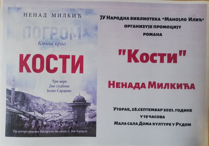 Искористили смо прилику да промовишемо књигу и читање, као и да позовемо наше суграђане да присуствују промоцији романа "Кости" аутора Ненада Милкића која ће се одржати 28. септембра 2021. године у малој сали Дома културе у Рудом.